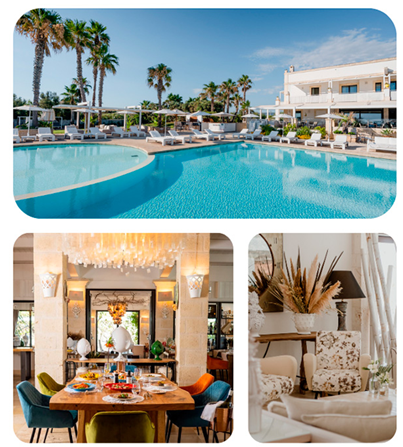 O hotel possui um estilo chic, sofisticado e autêntico, totalmente dentro da atmosfera da Puglia, recebendo seus hóspedes com personalidade e inteira personalização de serviços, para relaxar e descobrir excelentes atividades na região.